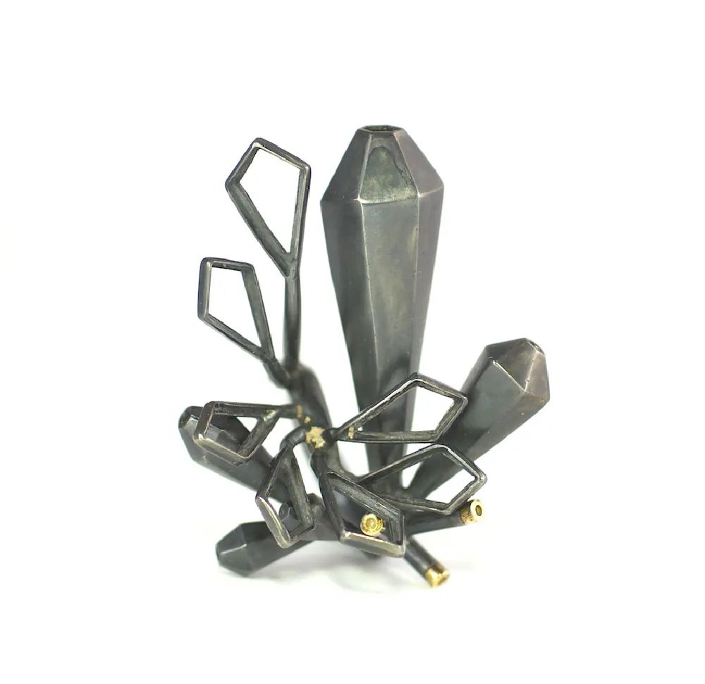 我創作的雕塑作品充滿存在感,靈感來自我周圍女性的豐富故事。原始紋理、天然寶石和優質金屬以保留自然精髓的方式結合在一起。
